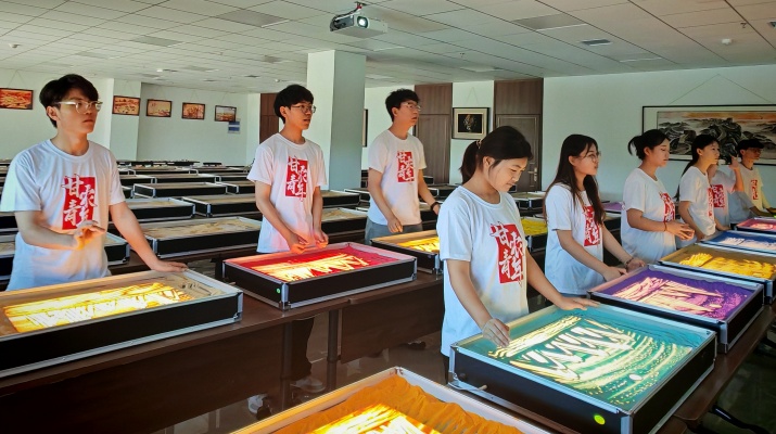 活动期间,同学们还体验了沙画艺术创作,观看了八步沙治沙专题教育片,并积极参与草方格压沙实践,亲手为荒漠治理贡献力量。通过理论与实践的结合,队员们深刻领悟了“困难面前不低头、敢把沙漠变绿洲”的八步沙精神。